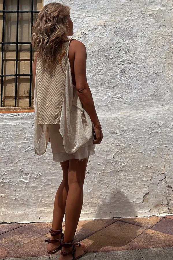 Sonia Linen Blend Ethnic Print Wrap Tie Layered Mini Skirt