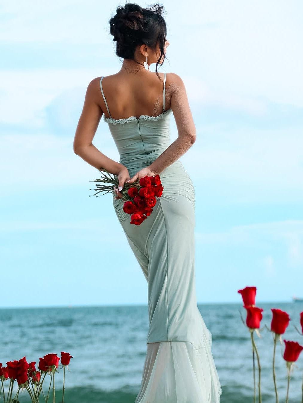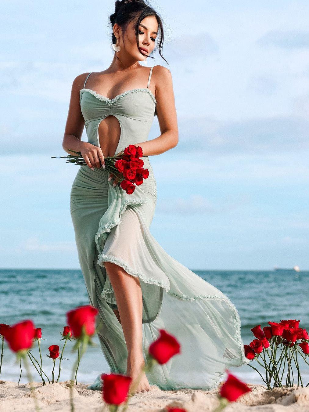 Anye Spaghetti Strap Ruched Cutout Ruffle Dress