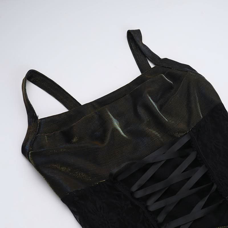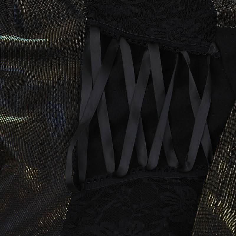 Square neck ruched lace up lace hem maxi dress