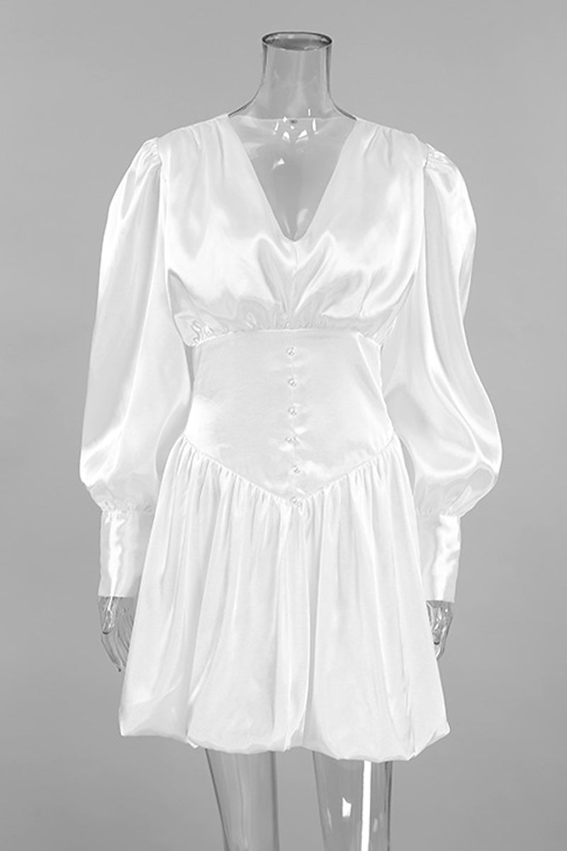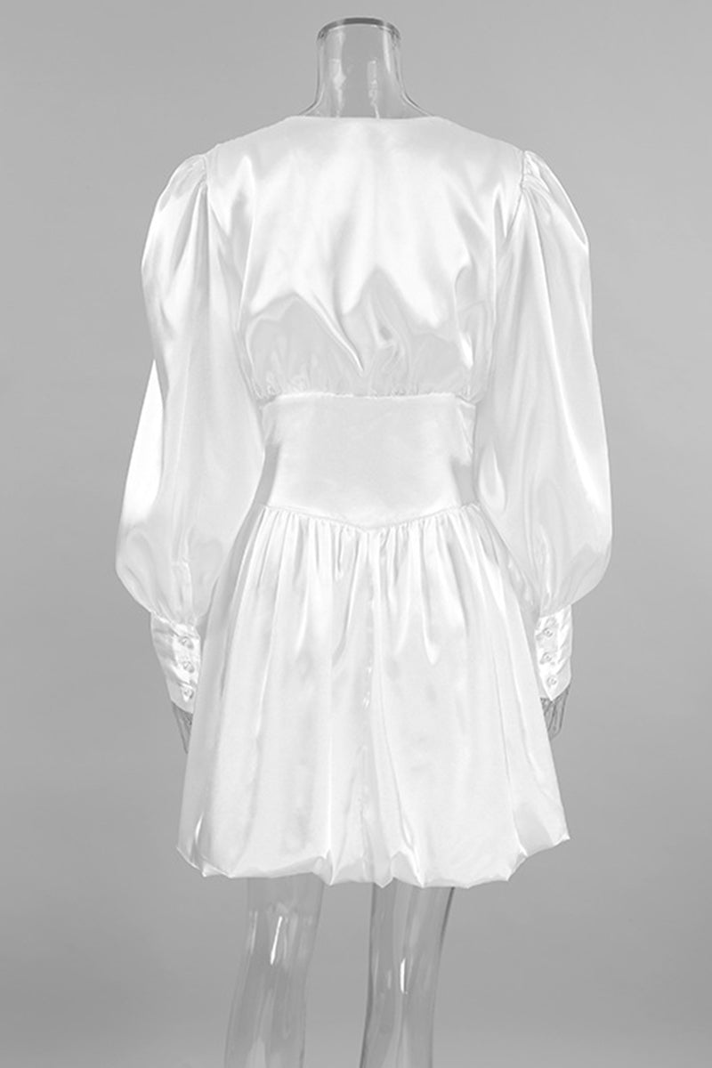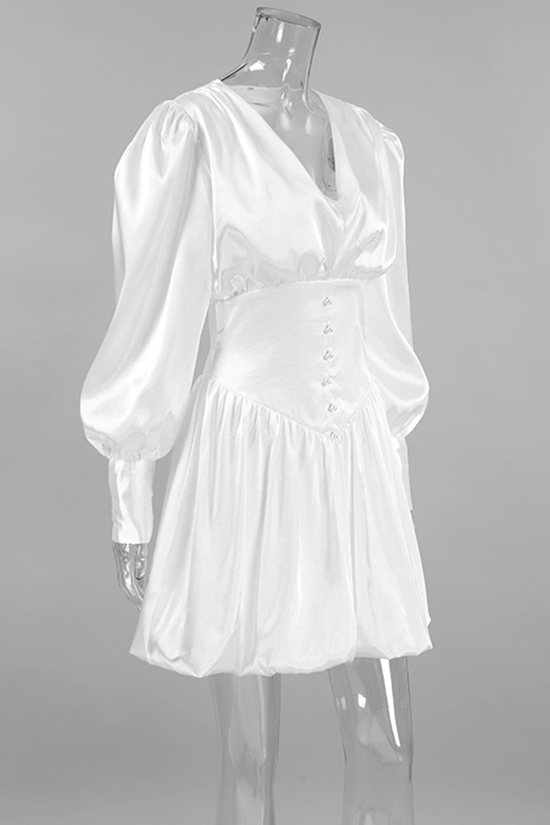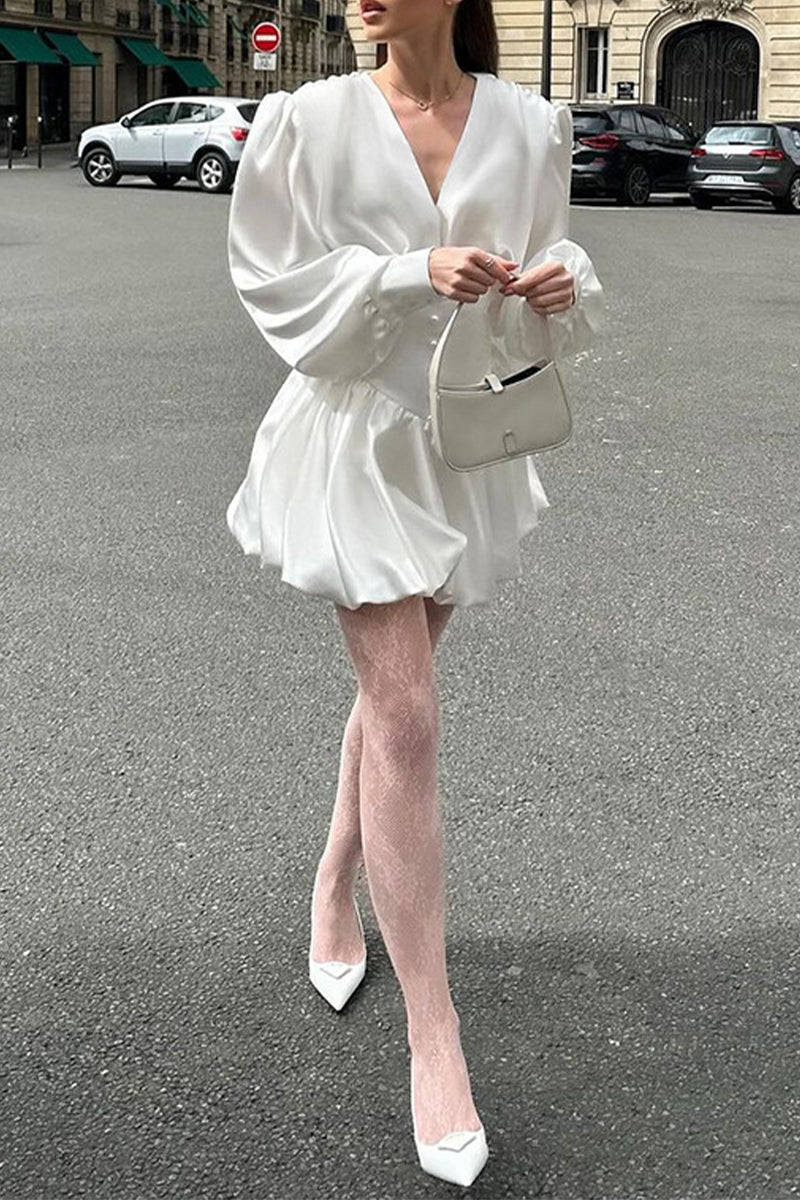 Street Elegant Solid Color Pearls Decor Ruched V Neck Ball Gown Dresses