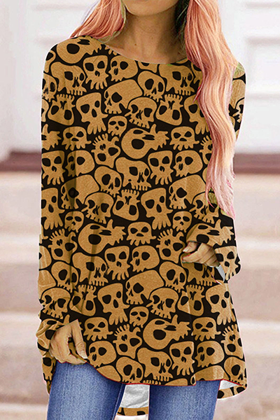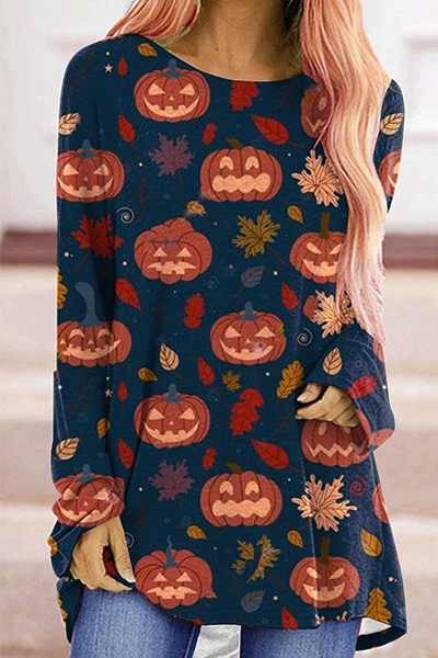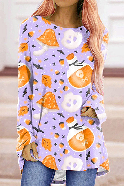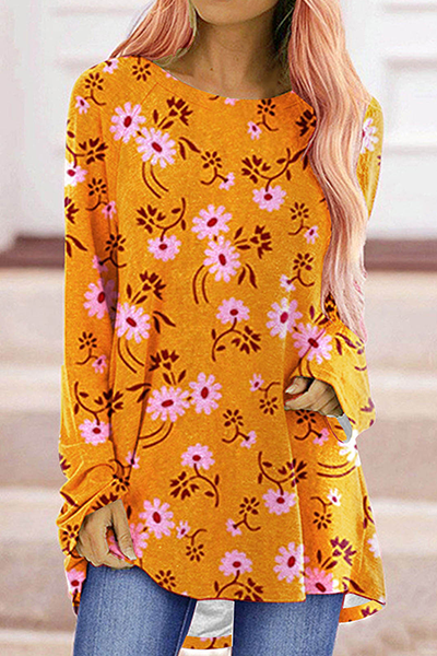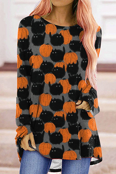 Street Print Split Joint Basic O Neck Tops