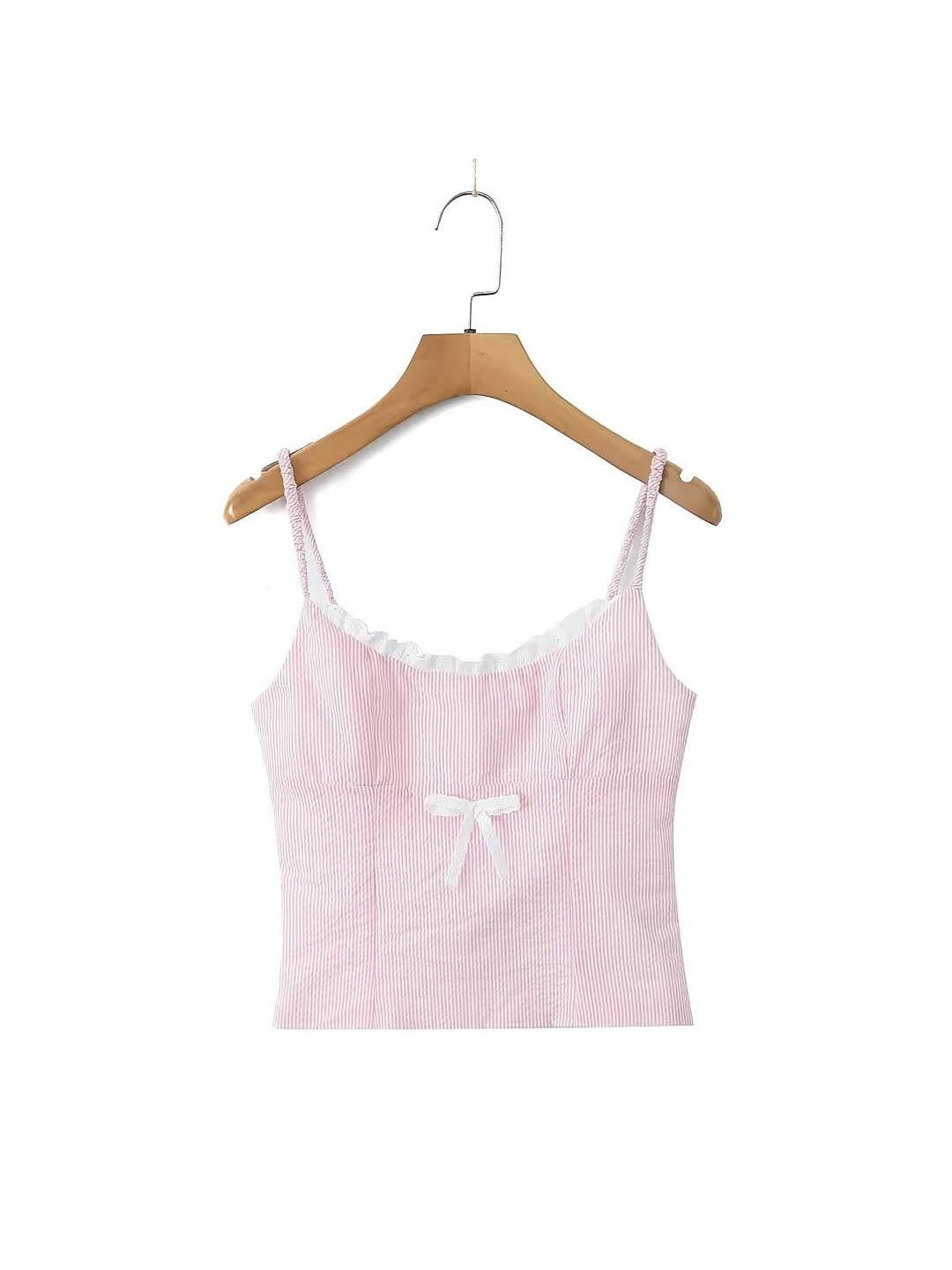 Striped Lace Bow Cami Top & Tied Skort Skirt Coord Set