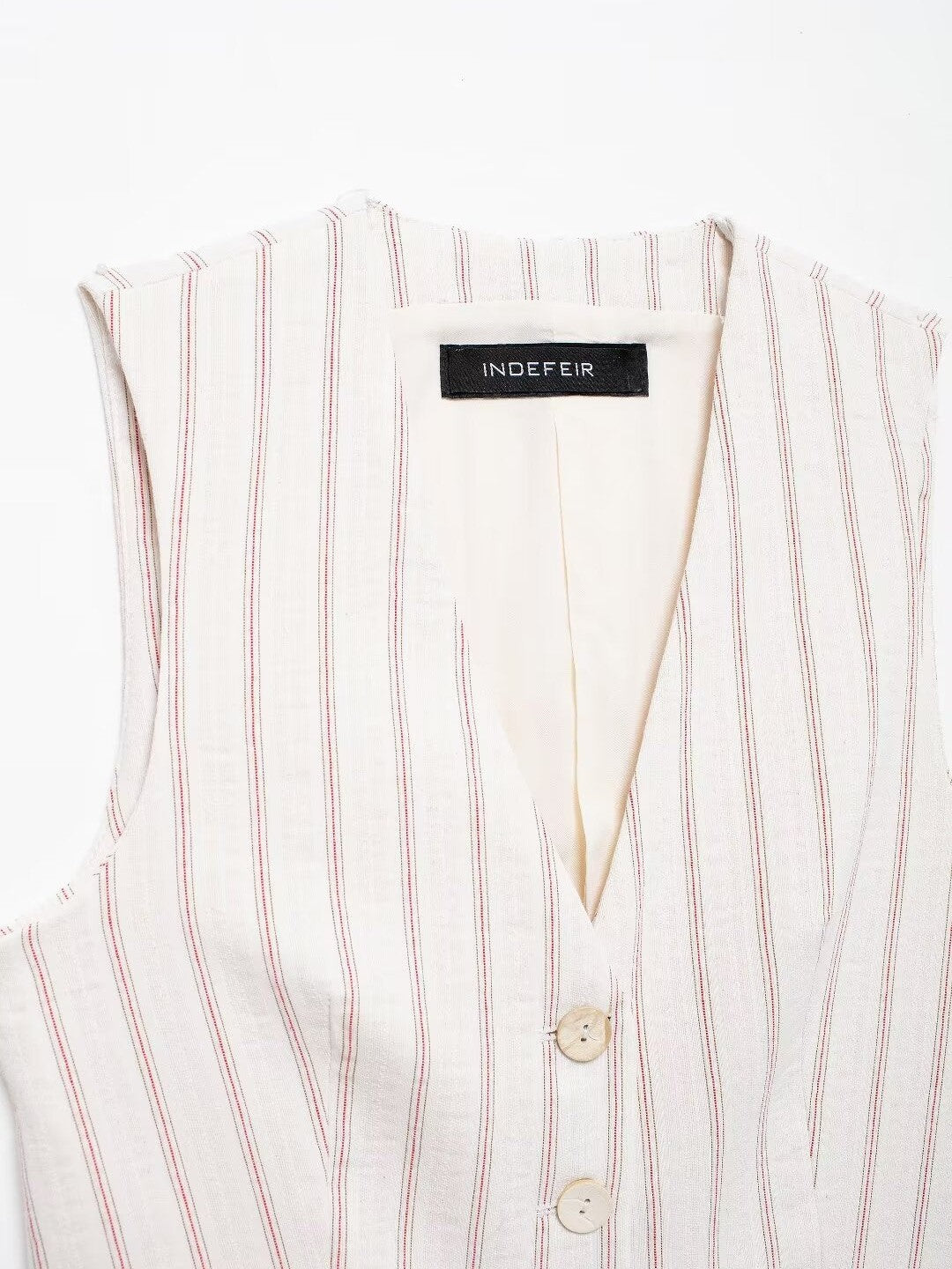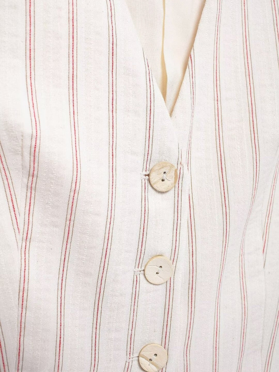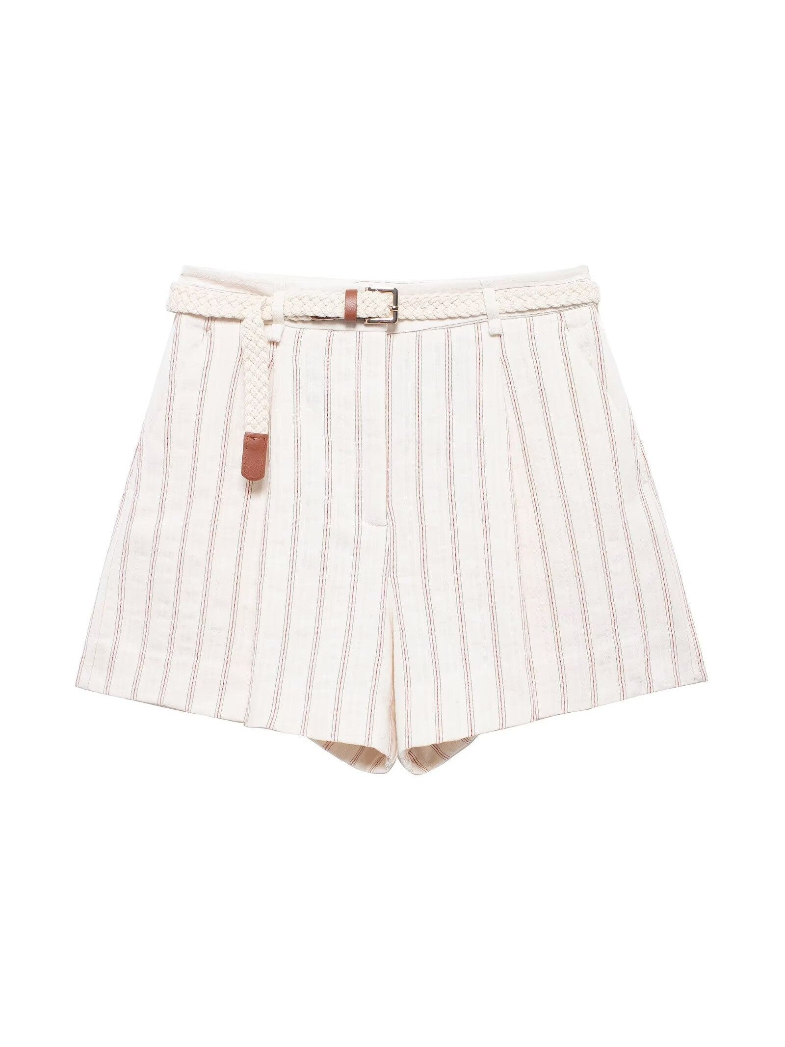 Striped Vest Waist Coat & Shorts With Belt Coord Set