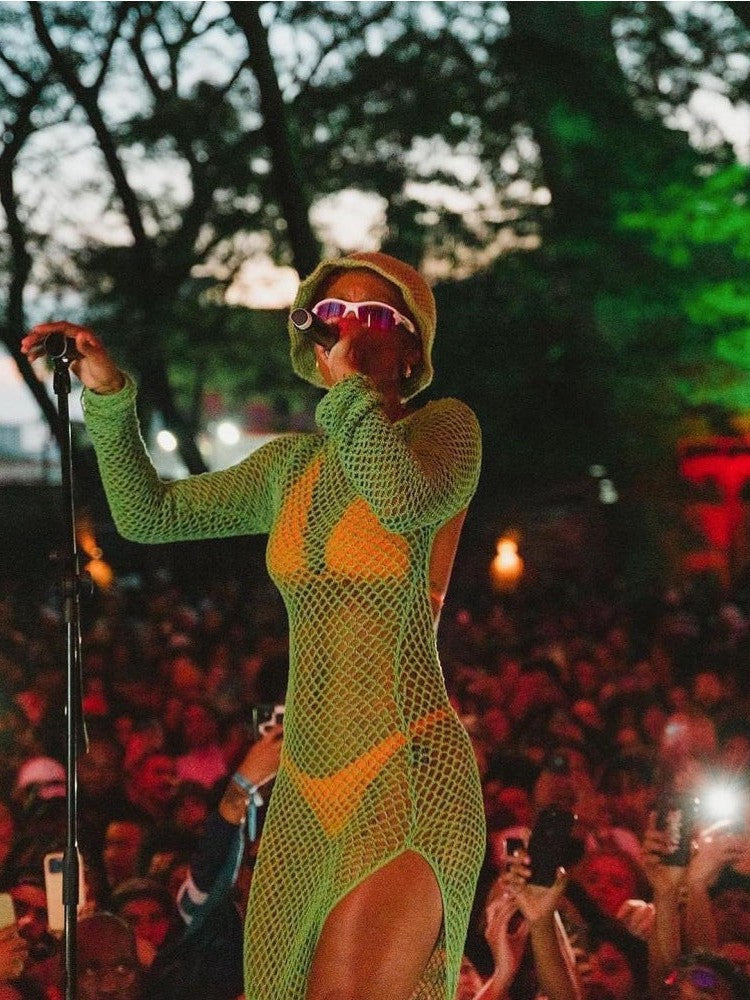 Summer Hollow Out See through Backless Knitted Slit Maxi Dress