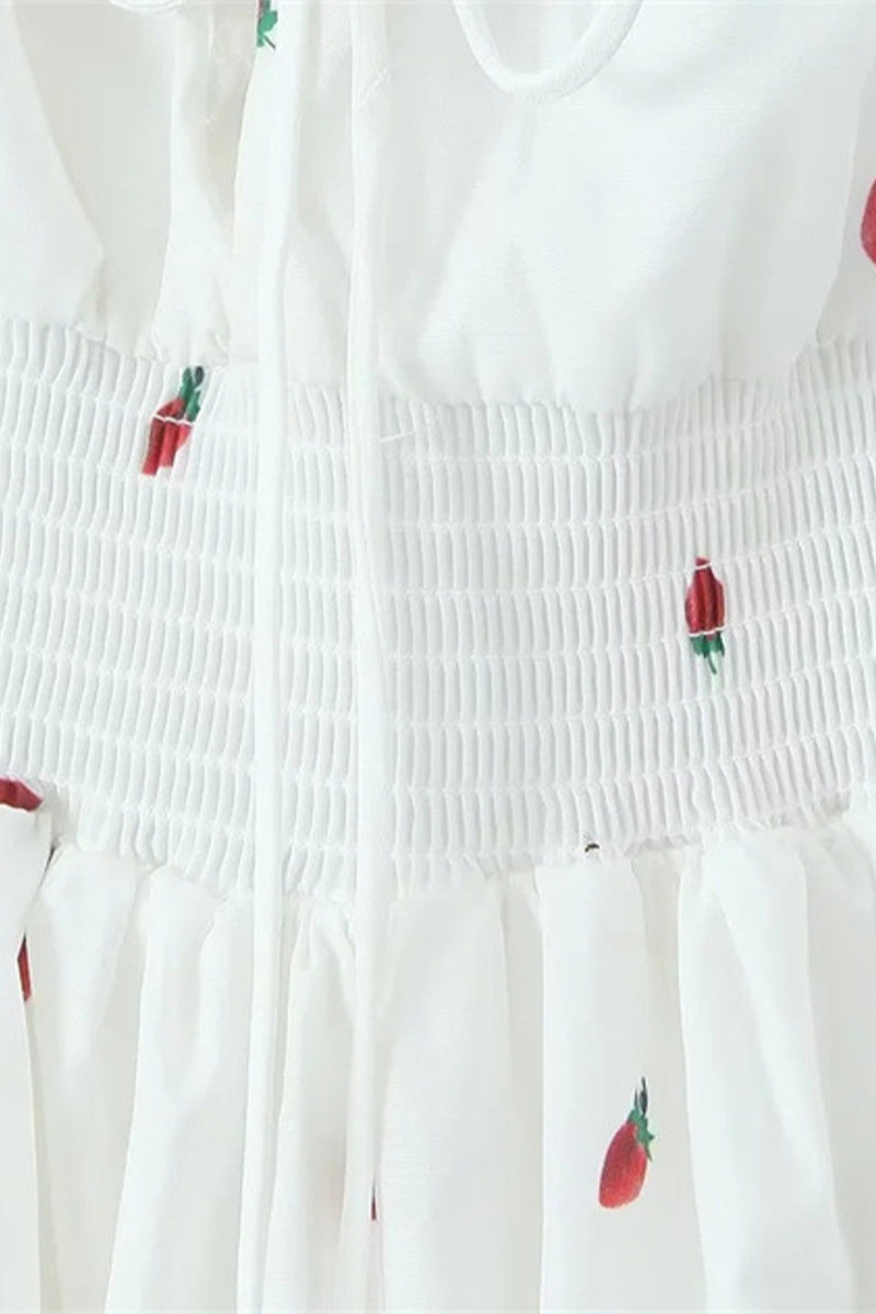 Sweet Fruit printing Patchwork Frenulum Off the Shoulder A Line Dresses