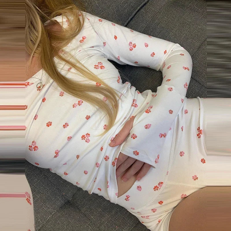 Sweet Girl Long Sleeve Crop Top Shorts Two Pieces Set