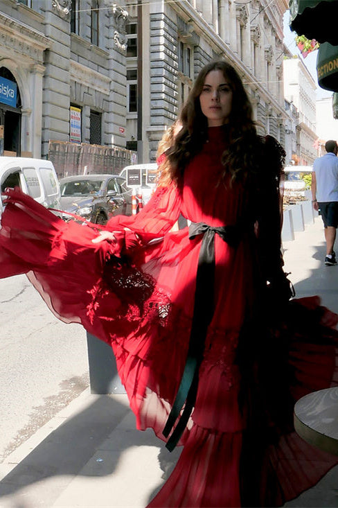 Sylvia Lace Tiered Chiffon Maxi Dress