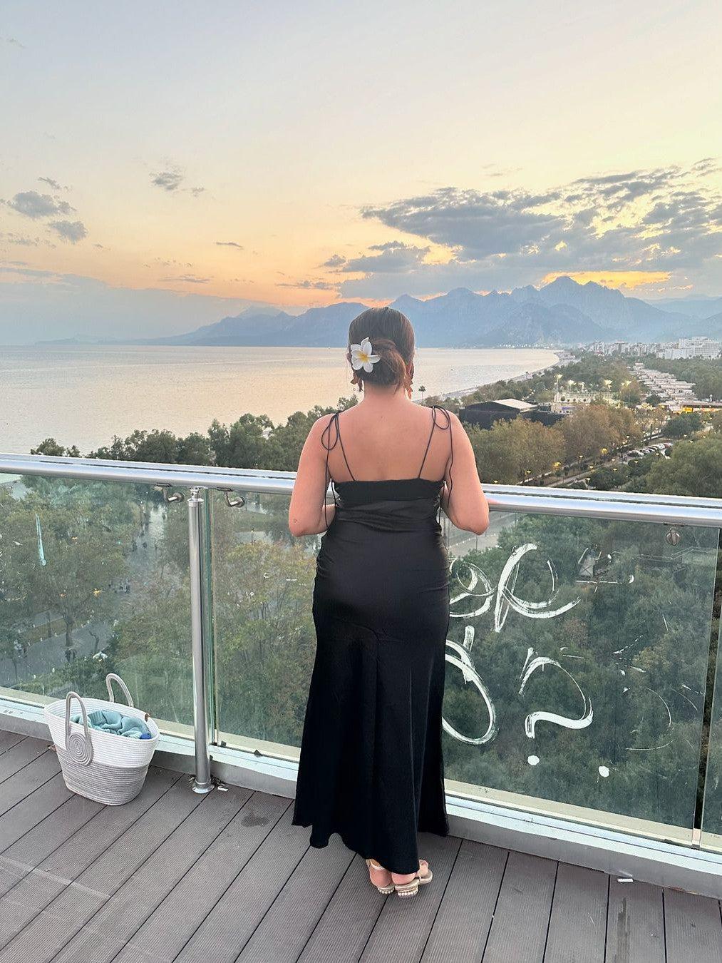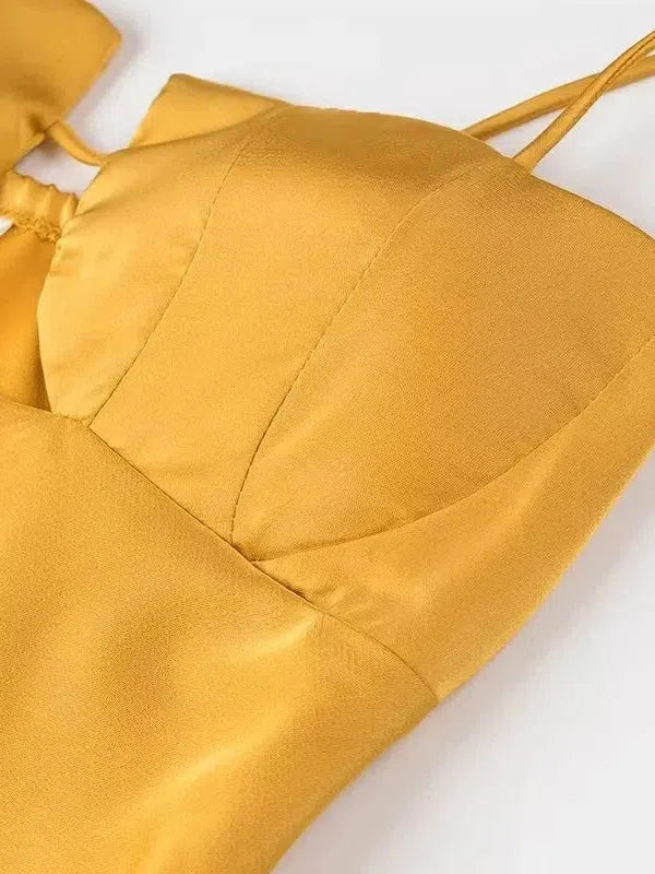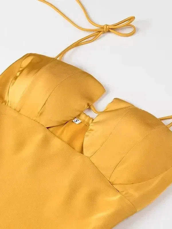 Tied Spaghetti Strap Cutout Flare Maxi Dress