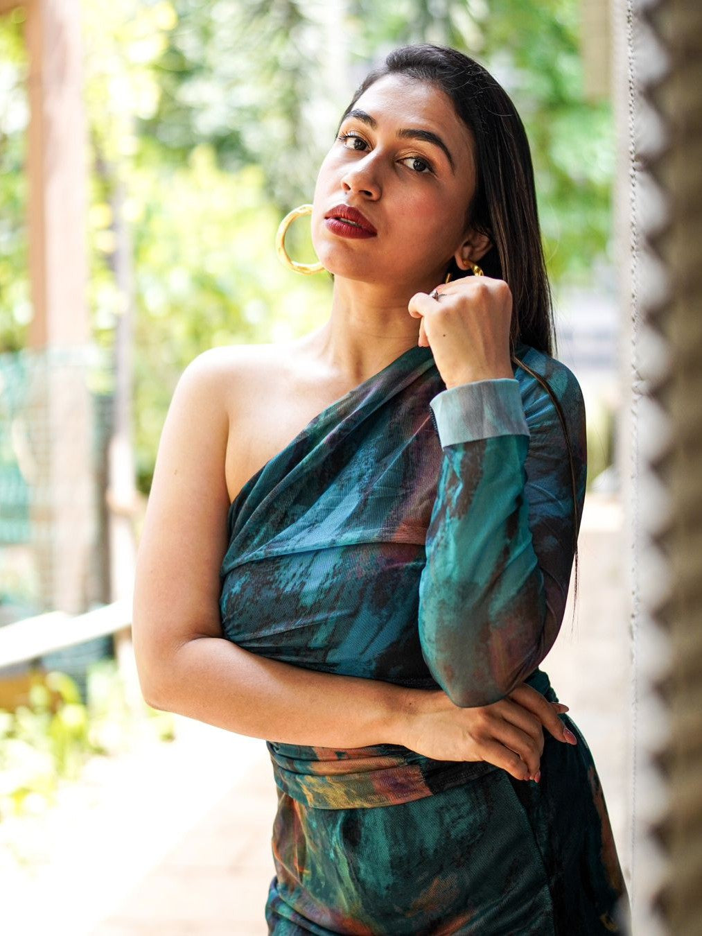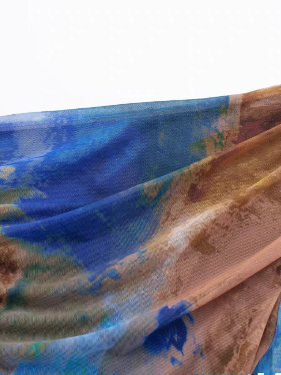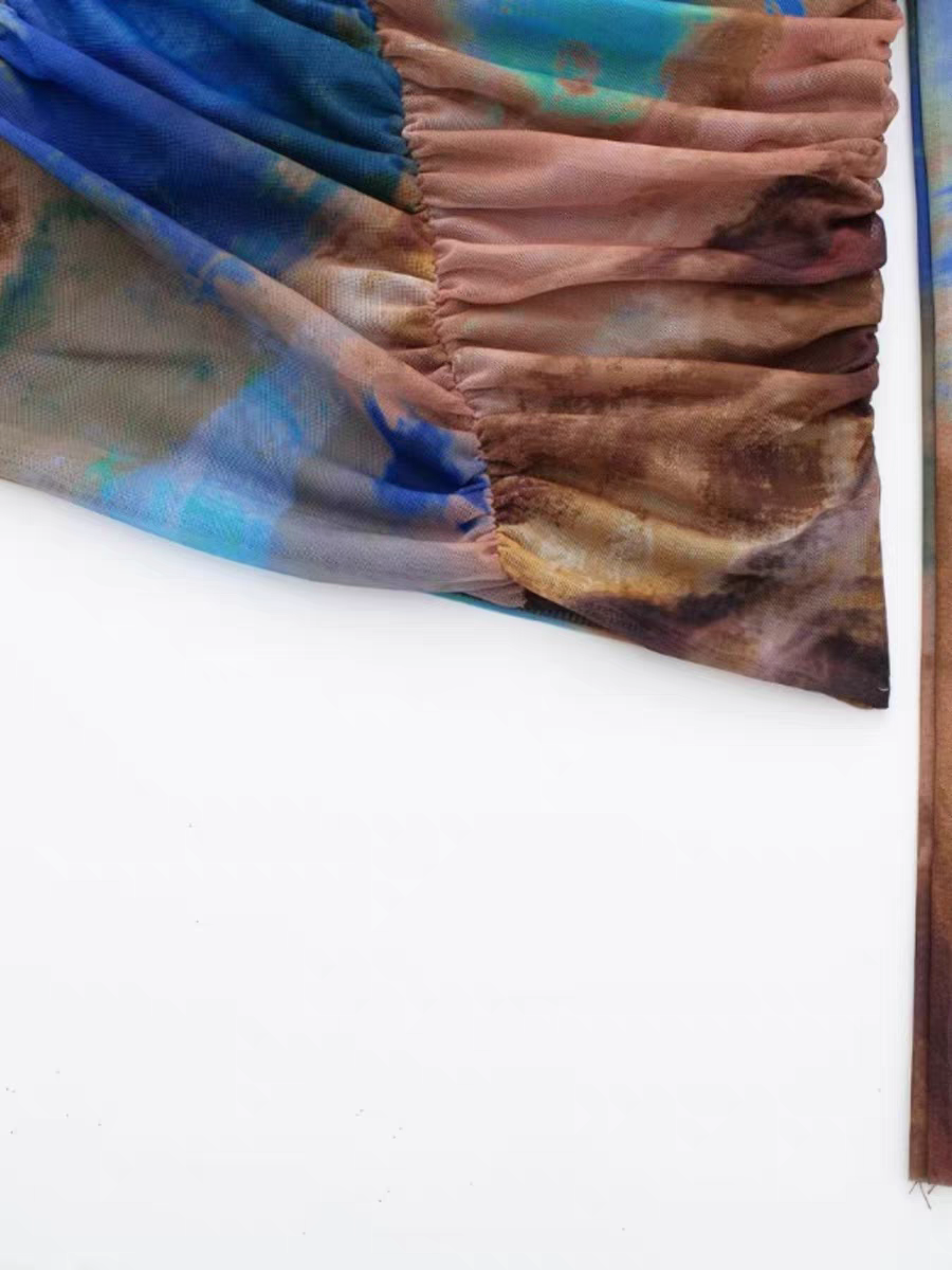 Tropical Print One Shoulder Ruched Mesh Top & Skirt Coord Set