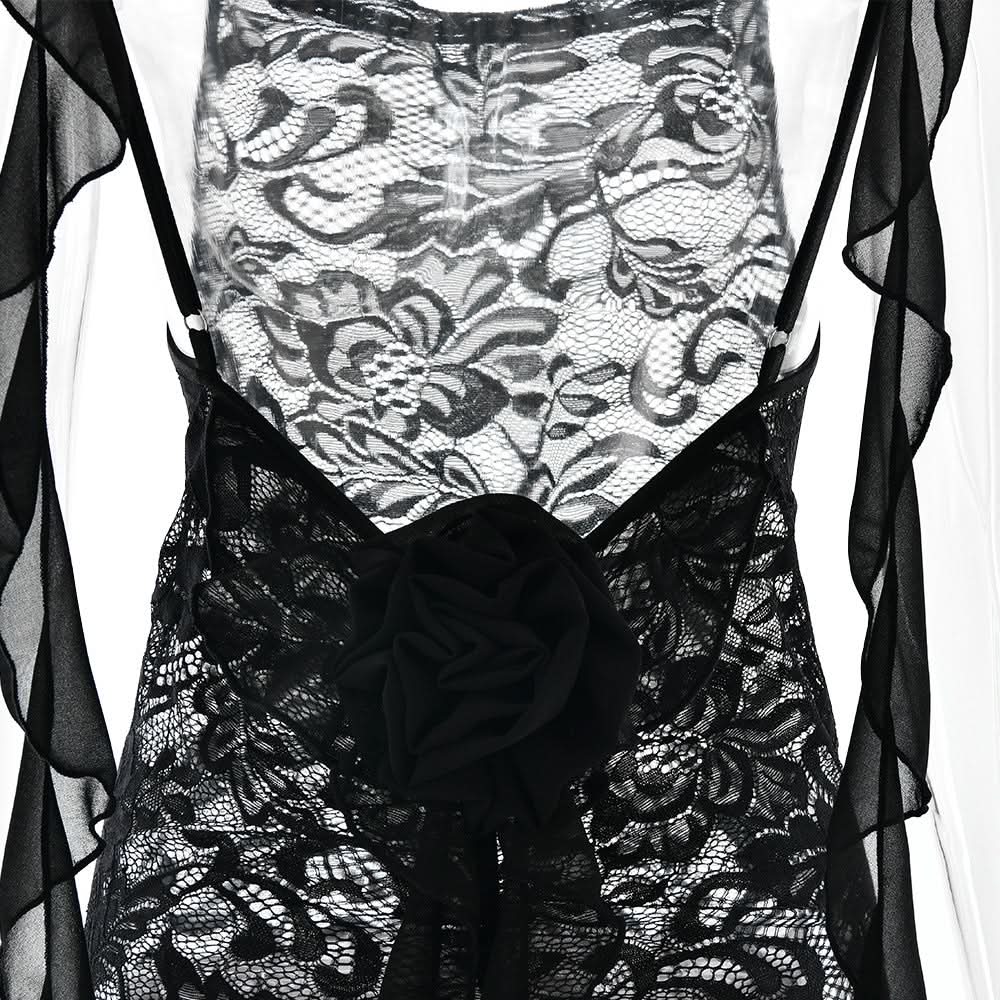 U neck flower applique lace backless cami maxi dress