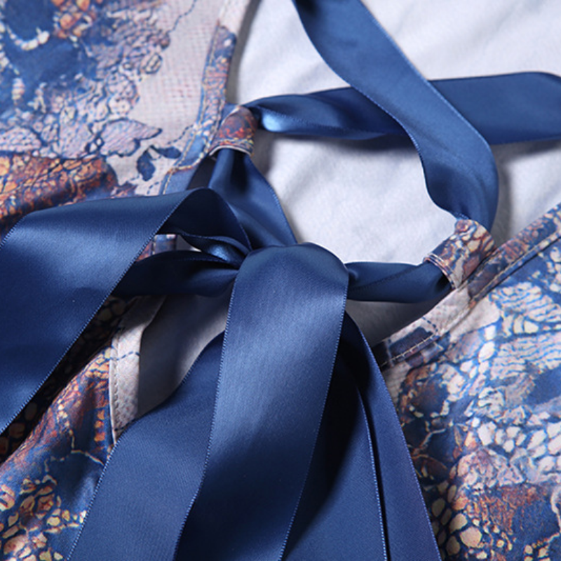 U neck lace up ribbon print cami maxi dress