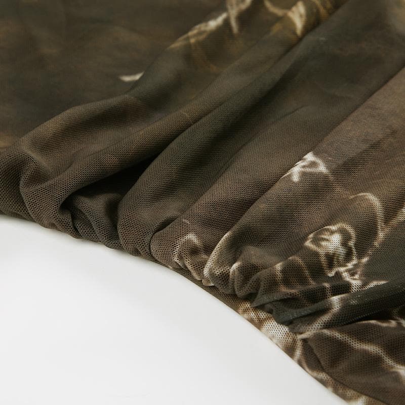 U neck print mesh cami maxi dress