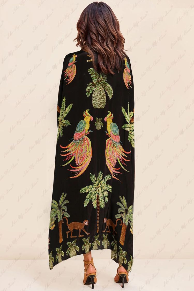 Unique Drop Shoulder Sleeve Coconut Tree Printed Dress