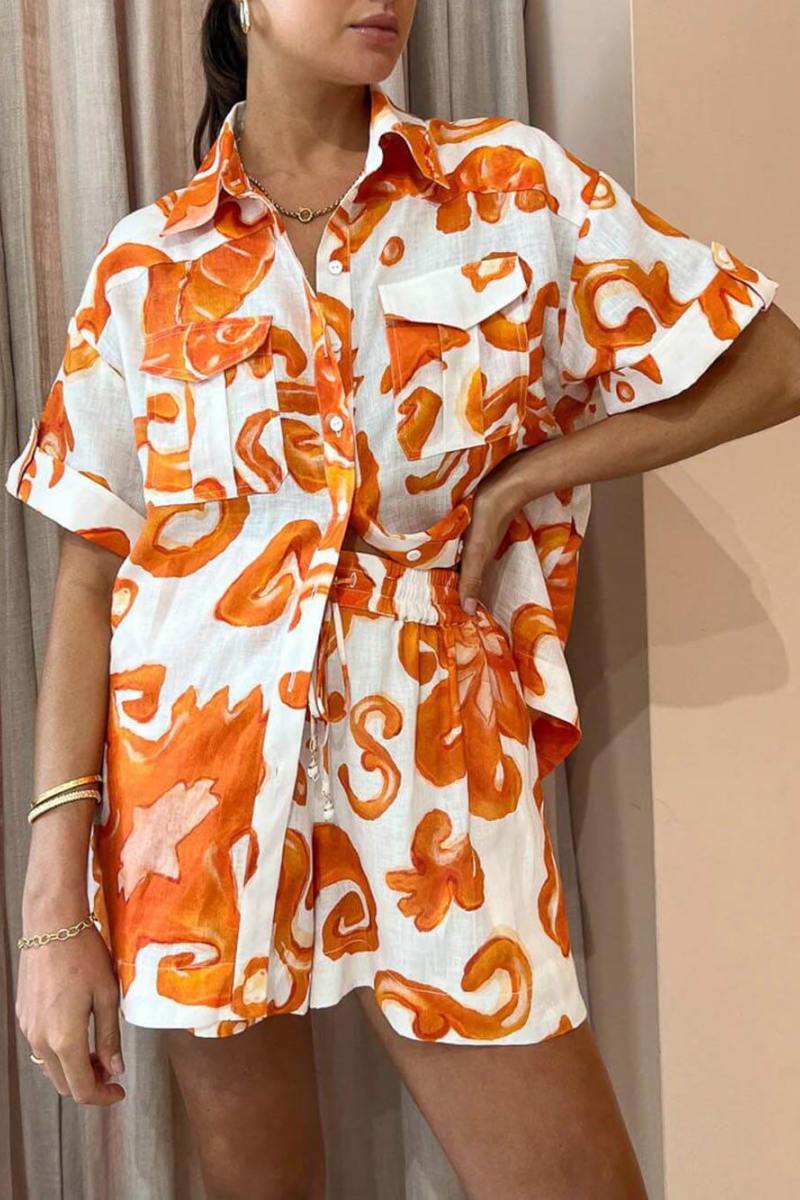 Unique Printed Shorts Lapel Loose Shirt Set