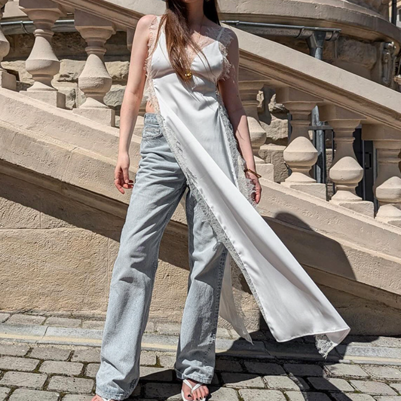V neck high slit lace hem cami maxi dress