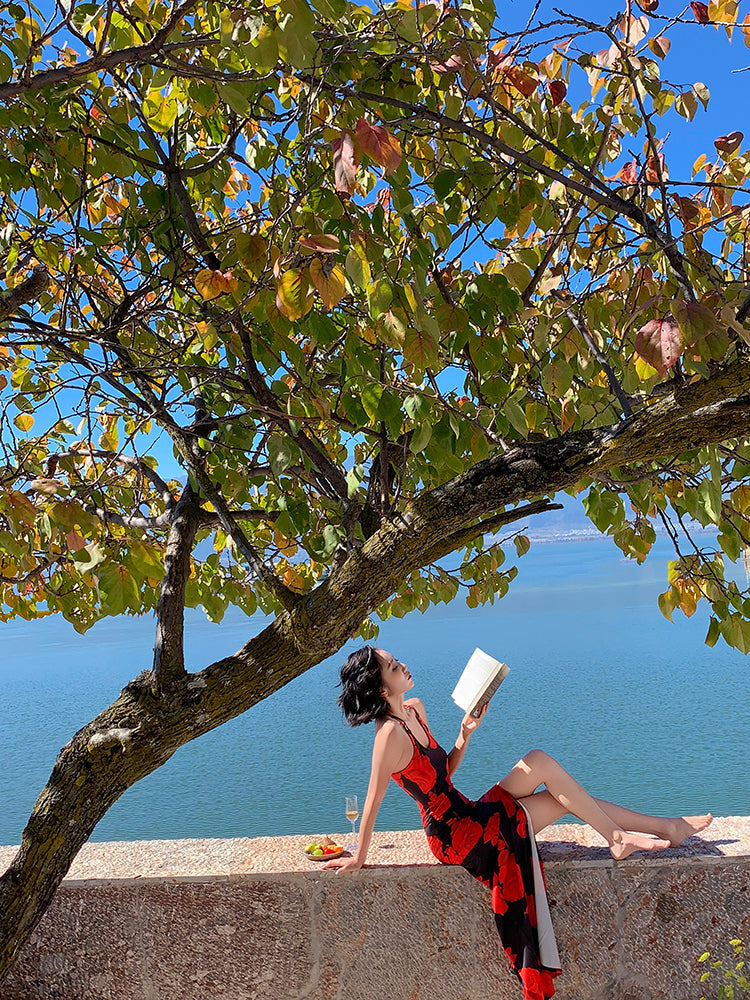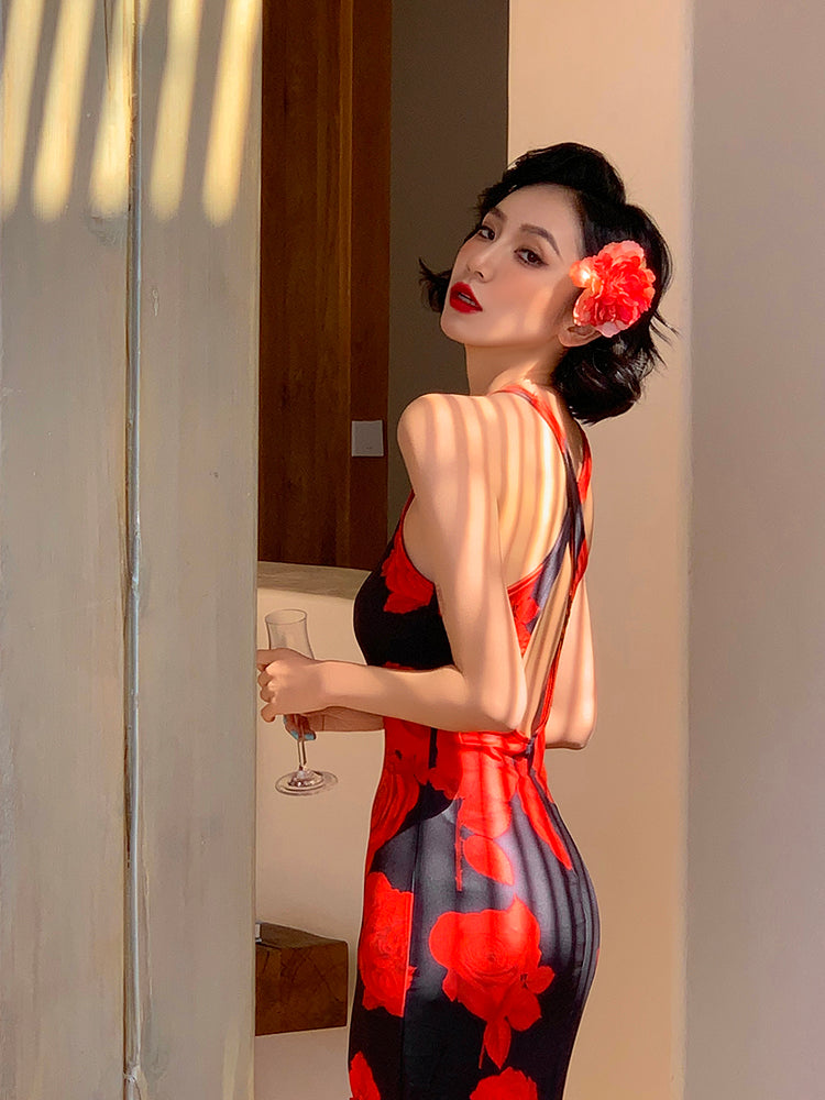 Vacation Floral Cross-Back Maxi Dress