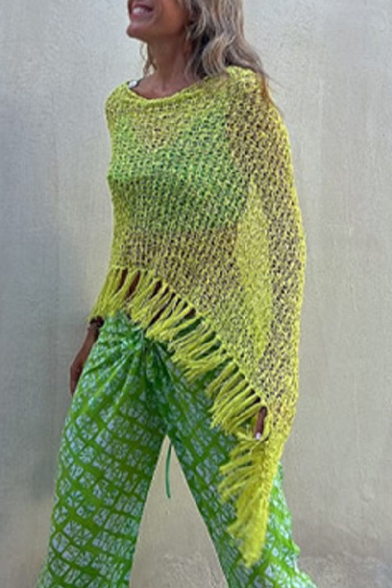 Vacation Solid Tassel Hollowed Out O Neck Outerwear