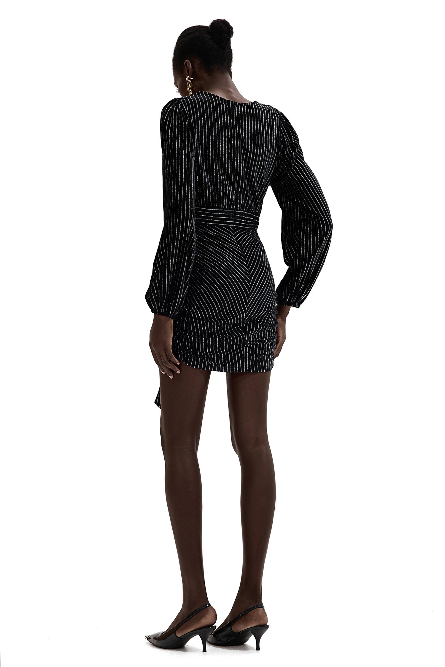 Velvet Silver Foil Stamping V-Neck Mini Dress