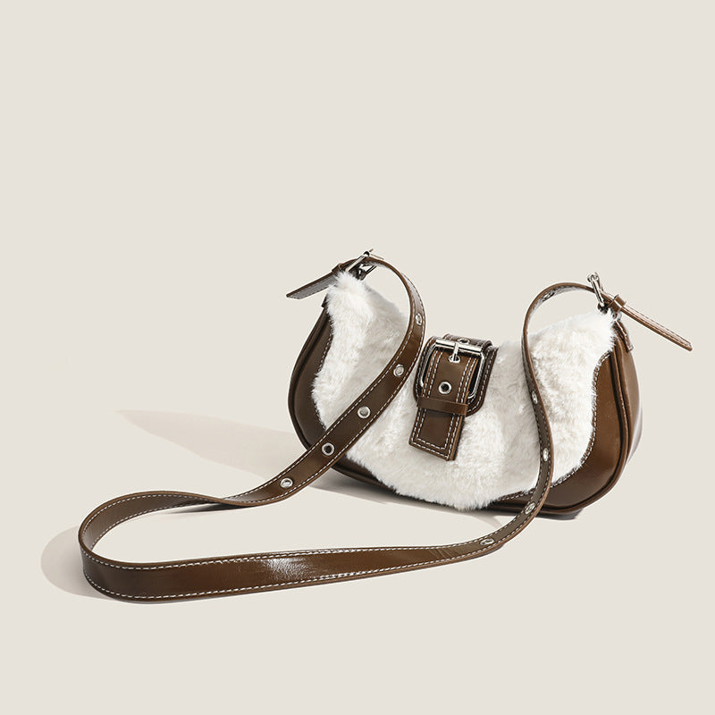 Vintage Elegant Solid Patchwork Fluffy Bags