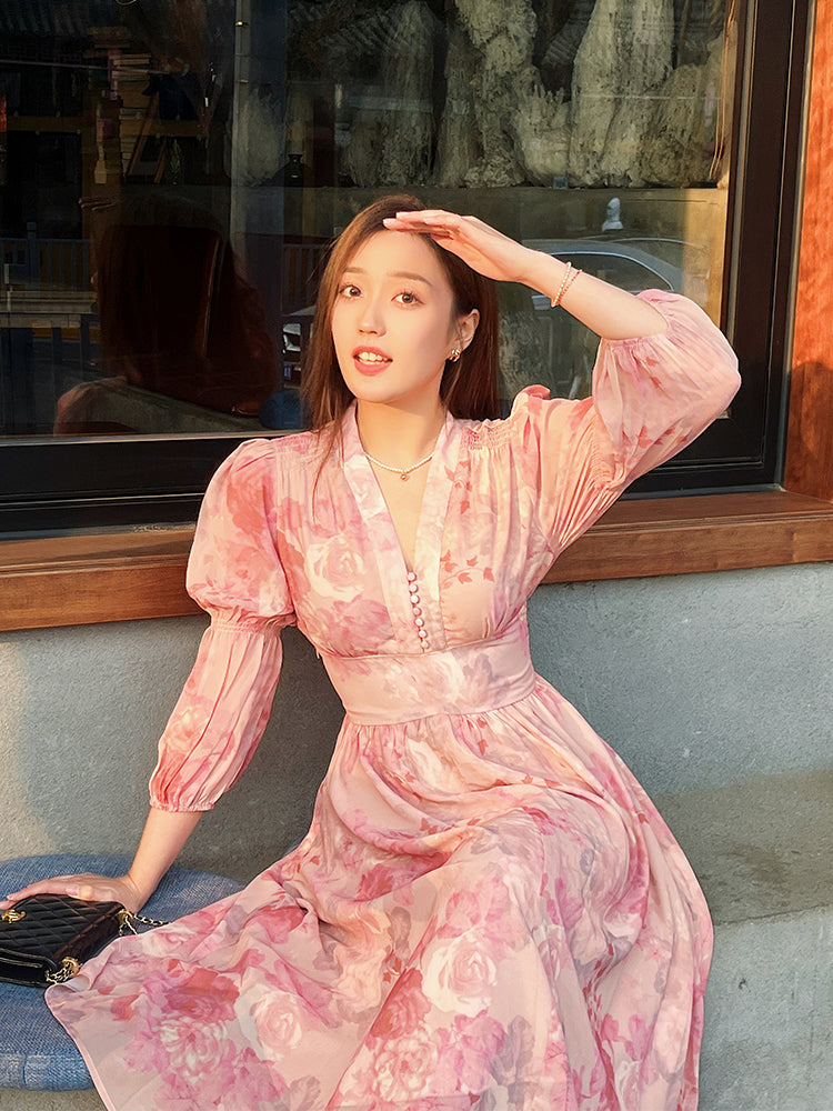 - New Plus Size Floral French Dress - High-End Early Fall Resort Style Slimming Gown