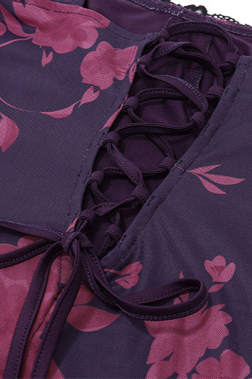 Vintage Print Lace Tie Slit Maxi Dress