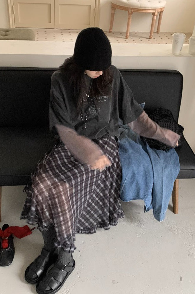 Vintage Two-Tone Plaid Asymmetrical Skirt
