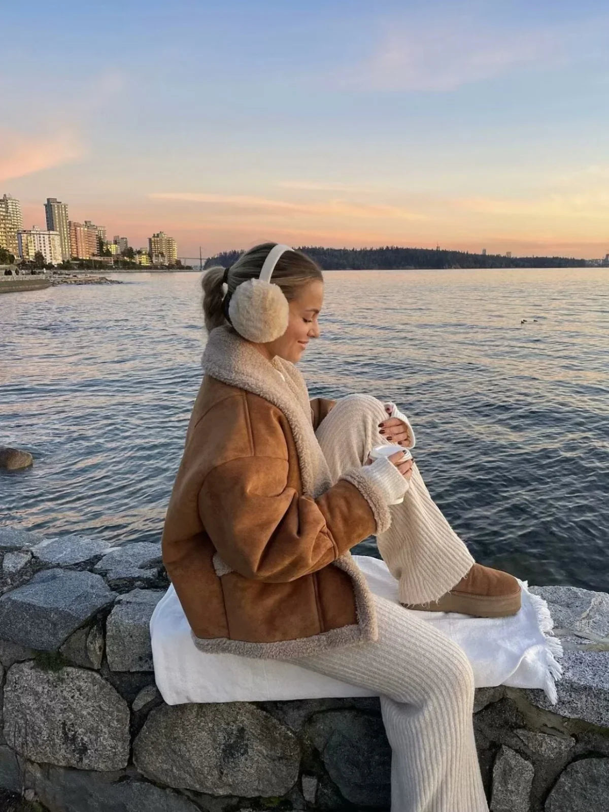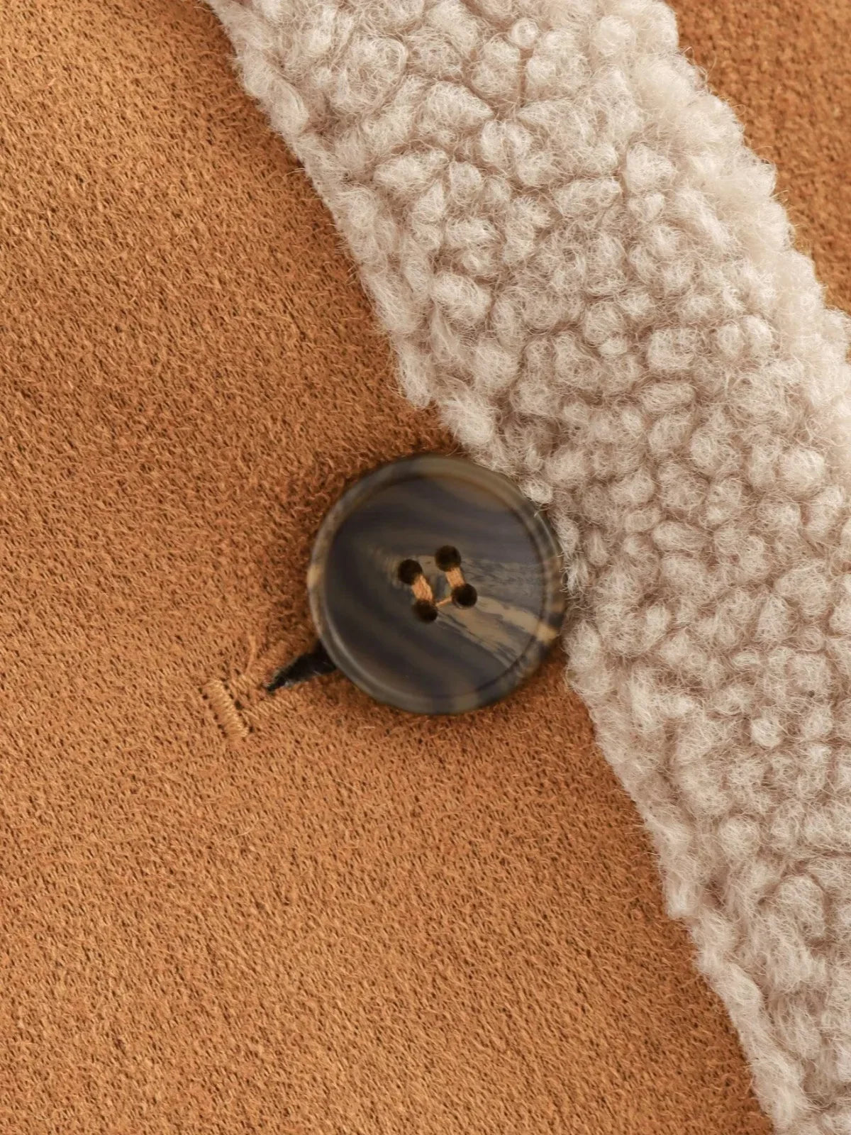 Stay cozy and stylish with the Warm Sherpa-Lined Faux Suede Jacket. This luxurious jacket features a soft faux suede exterior and a plush sherpa lining that adds warmth and texture. Designed with a relaxed, oversized fit, it's perfect for layering over your favorite winter outfits. The sherpa trim along the collar, cuffs, and hem enhances its vintage-inspired look, while the deep pockets add both style and functionality. Ideal for chilly days, this jacket brings a blend of comfort and rustic charm to any casual ensemble.