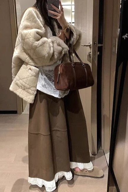 Wool Blend Ruffle High-Waisted Relaxed Skirt