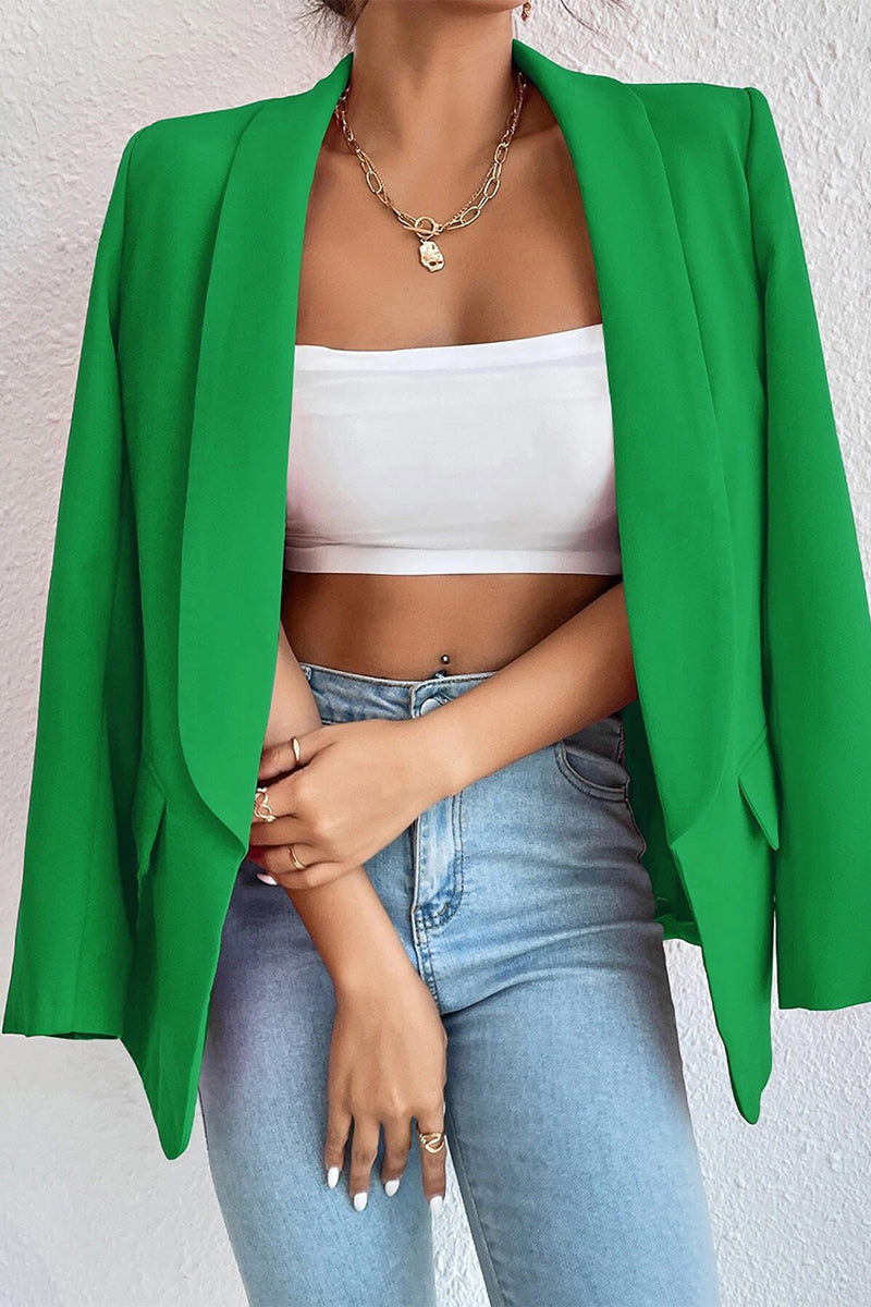 Work Solid Pocket Turn-back Collar Outerwear(4 Colors)