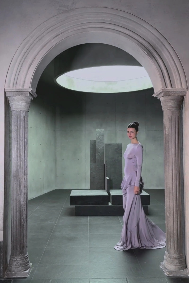 Xenia Purple Ruffle Detail Maxi Dress