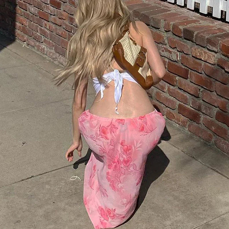 Y2K Floral Straight Leg Loose Slim Low Waist Summer Skirt