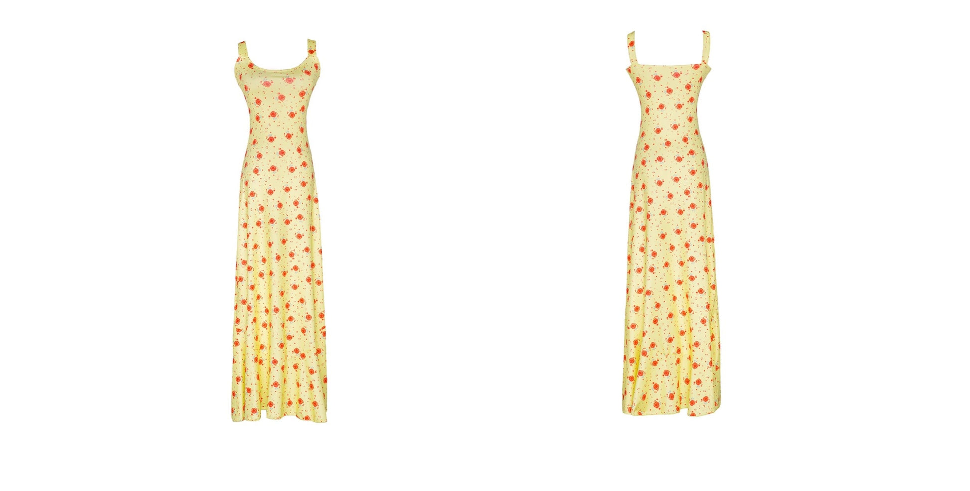 - Yellow Floral Resort Maxi Dress - Elegant French Slim-Fit Vacation Style