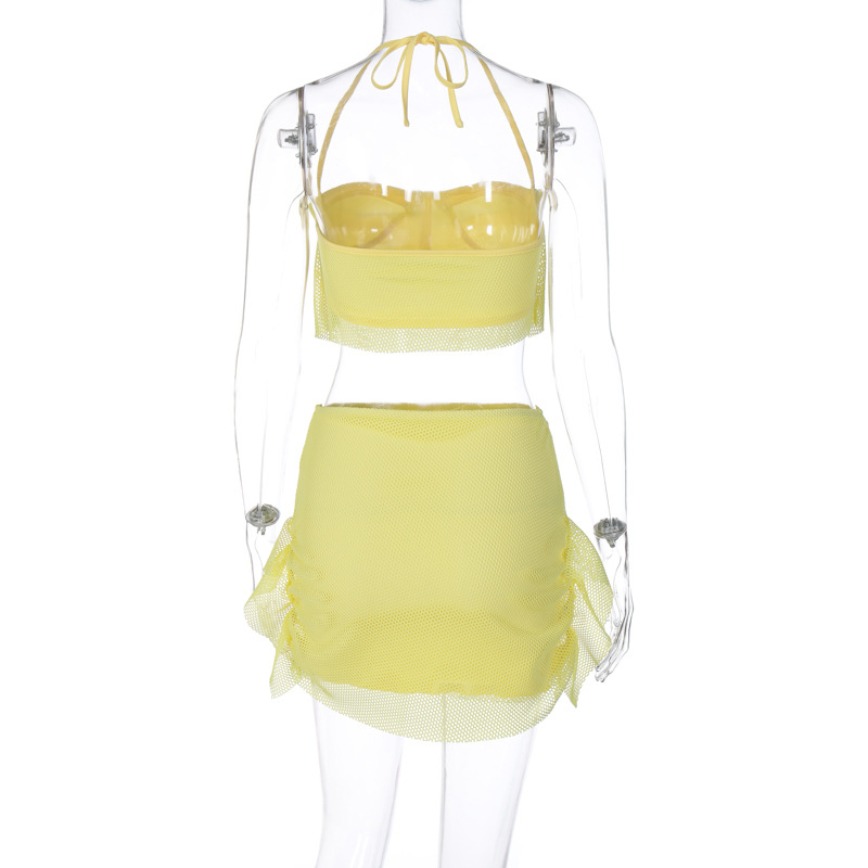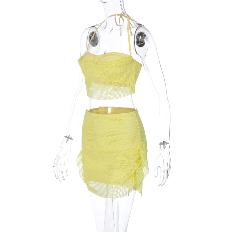 Elli Yellow Mesh Top & Two Piece Skirt Coord Set