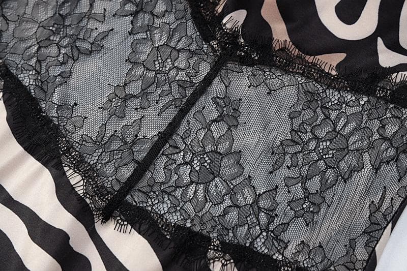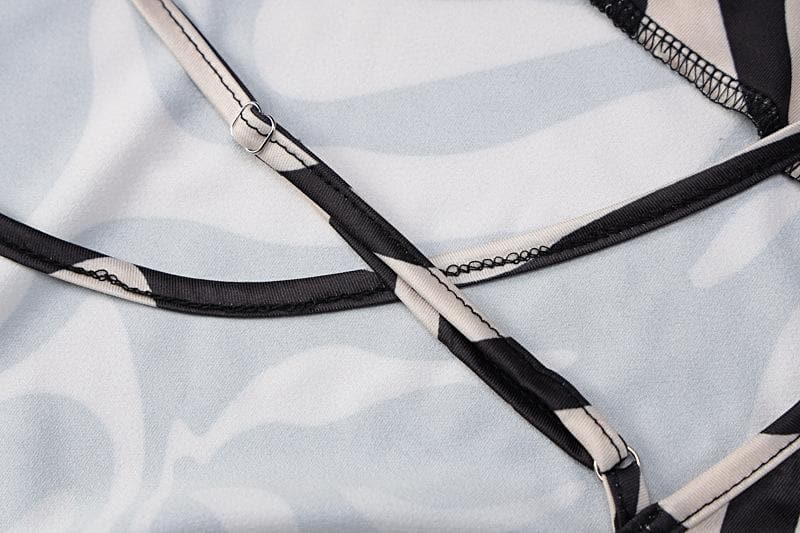 Zebra print hollow out contrast cross back slit backless cut out maxi dress