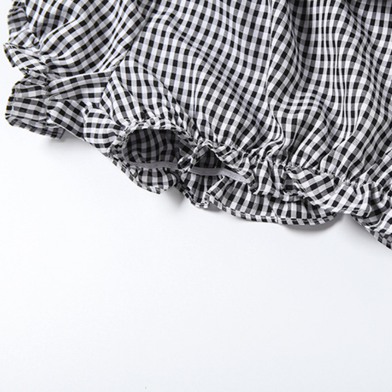 Plaid ruched contrast medium rise short pant