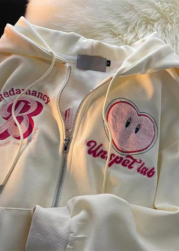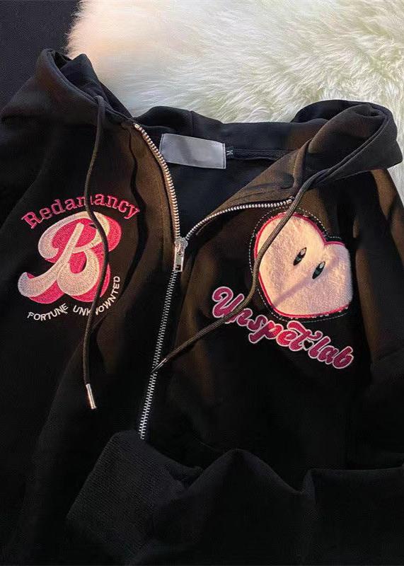 Zipper Hooded Embroidered Cardigan Jacket - Casual Spring/Autumn Style
